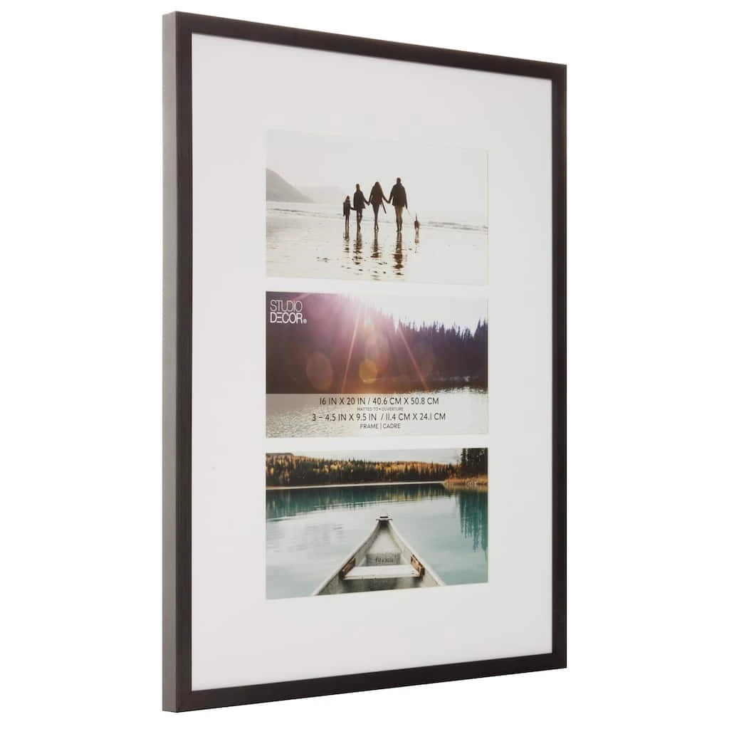 This wall frame from Studio Décor features a black wooden border and is matted for three openings. Place your favorite family photos or vacation images in this frame to brighten up your living area or bedroom décor.