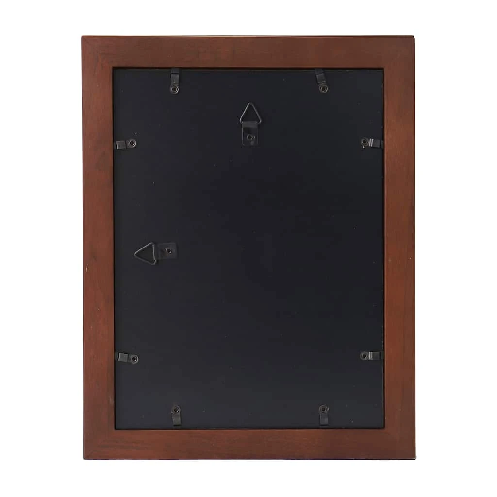 Display a cherished photograph or artwork in this wall frame. The handsome brown frame has a wood-grain look. Turnbuckles and D-rings are pre-attached to make it easier for you to hang the frame on a wall.