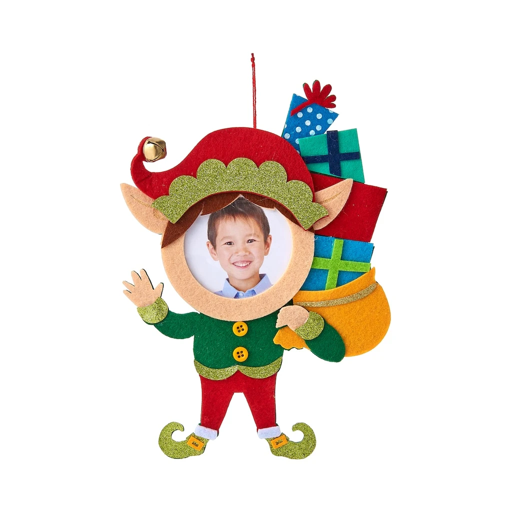 Bring some charm to your holiday decorations with this Elf felt frame from Studio DΓ©cor! Place a small 2.5″ x 2.5″ image in the frame and hang it on your Christmas tree or mantel.