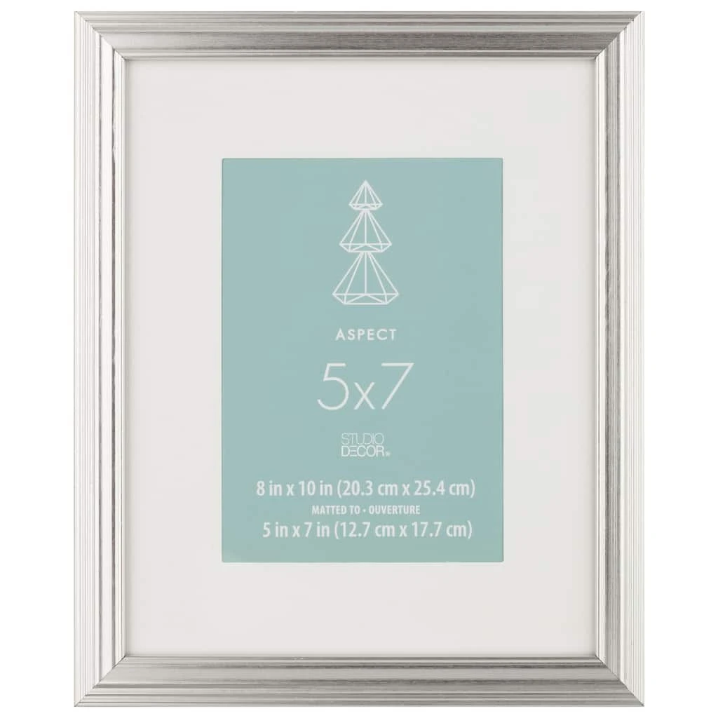 Quickly and easily preserve a moment in time with this silver coloredΒ narrow edged frame with mat from Aspect collection by Studio DΓ©cor. Present a photograph of your loved ones or a cherished piece of artwork in this uniquely designed picture frame. A thick layer of glass protects your display.