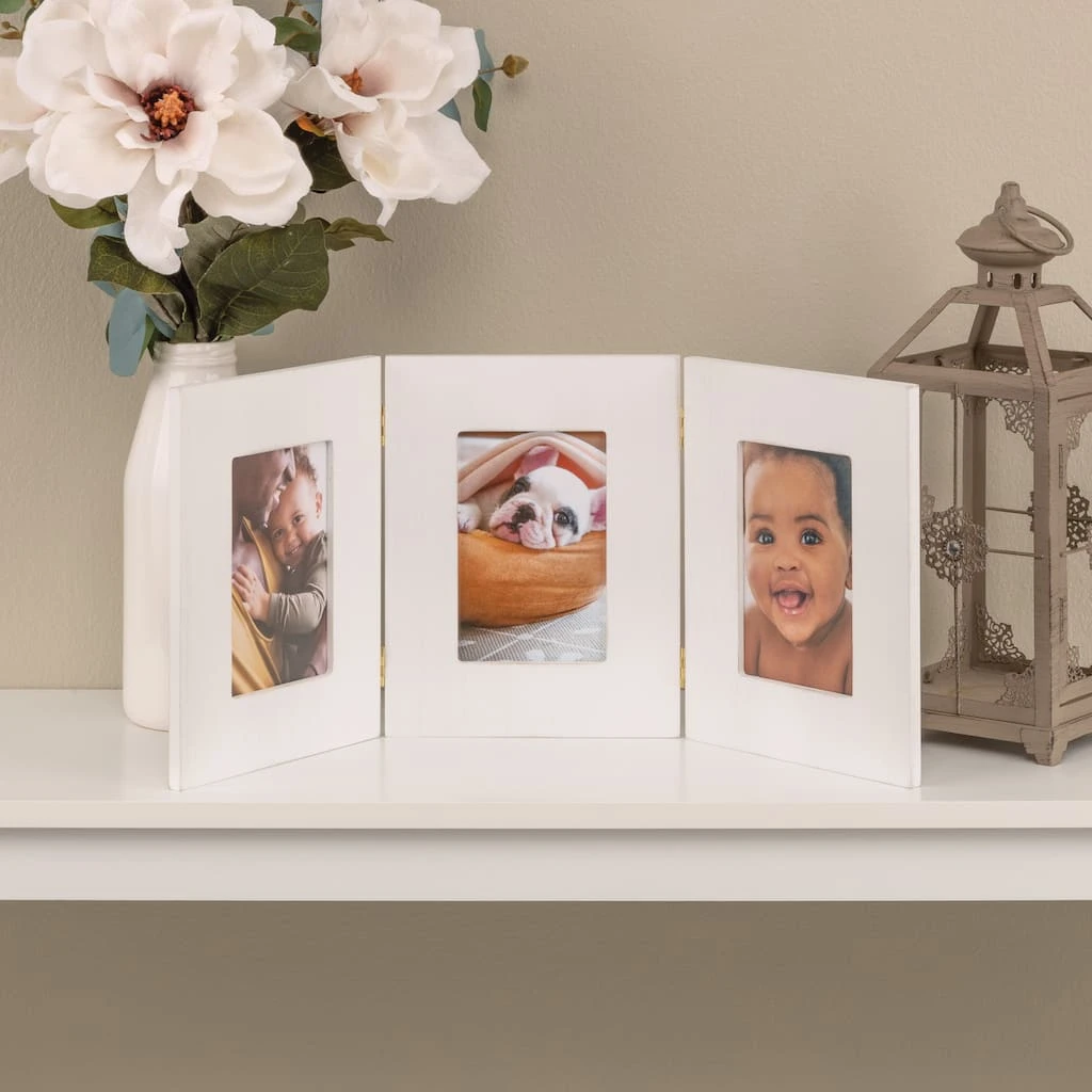 Display your treasured moments in this classic white triple photo frame. Place it on a mantle or side table teamed with floral accents to enhance your living space.