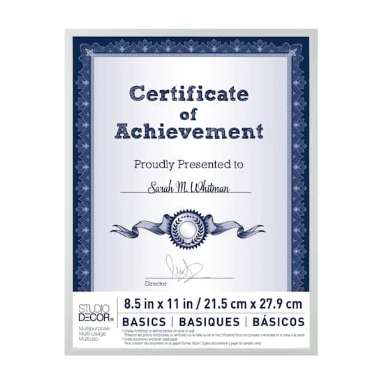 - 8.5″ x 11″ size includes a fold-out easel attached to frame backing