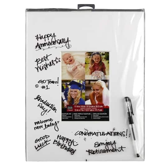 This pre-cut mat is a perfect alternative to a party guest book, and a lot more fun. Put your own picture behind it and let attendees at your wedding, birthday, baby shower, retirement, graduation or any celebration write their own comments directly onto the mat.